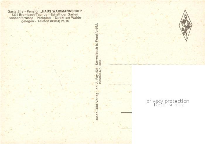 73089292 Brombach Schmitten Gaststaette Haus Waidmannsruh postalisch nicht gelaufen Erhaltung siehe scans [NatalD47] KatCode: 11110006434009