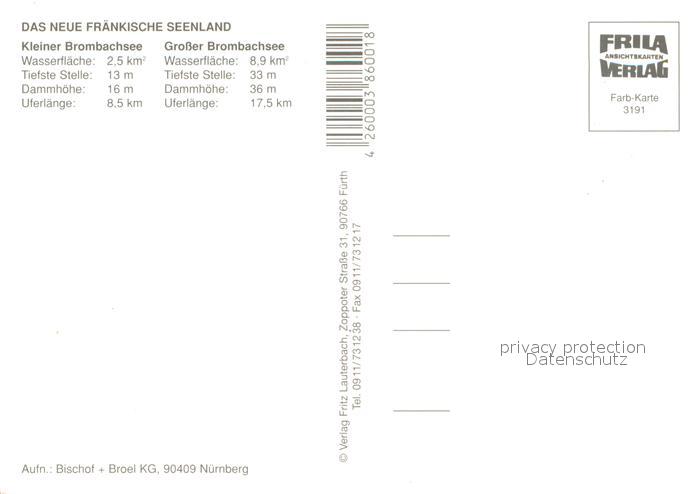 73685767 Brombachsee Fliegeraufnahme postalisch nicht gelaufen Erhaltung siehe scans [WerneD78] KatCode: 11110009577177