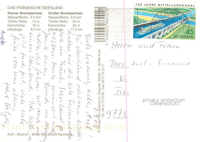 73782695 alte Postkarte Brombachsee Fraenkisches Seenland postalisch gelaufen Fliegeraufnahme Erhaltung siehe scans [FriedD77] KatCode: 11110009577177