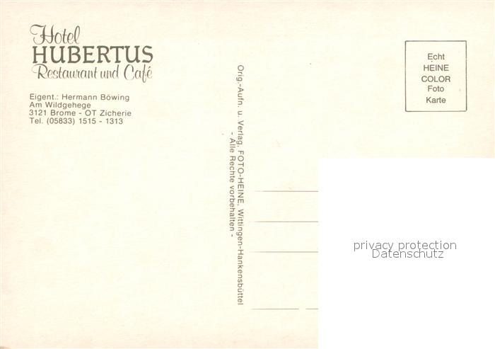 73722755 Brome Niedersachsen Hotel Hubertus Hirschherde postalisch nicht gelaufen Erhaltung siehe scans [LiesaD40] KatCode: 11110003151005