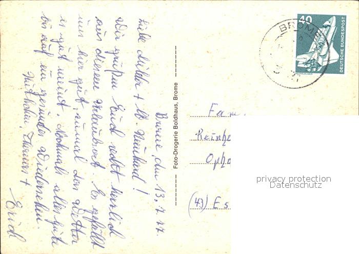 72325785 alte Postkarte Brome Niedersachsen Schulstrasse Hauptstrasse Reithalle Burg postalisch gelaufen Erhaltung siehe scans KatCode: 11110003151005