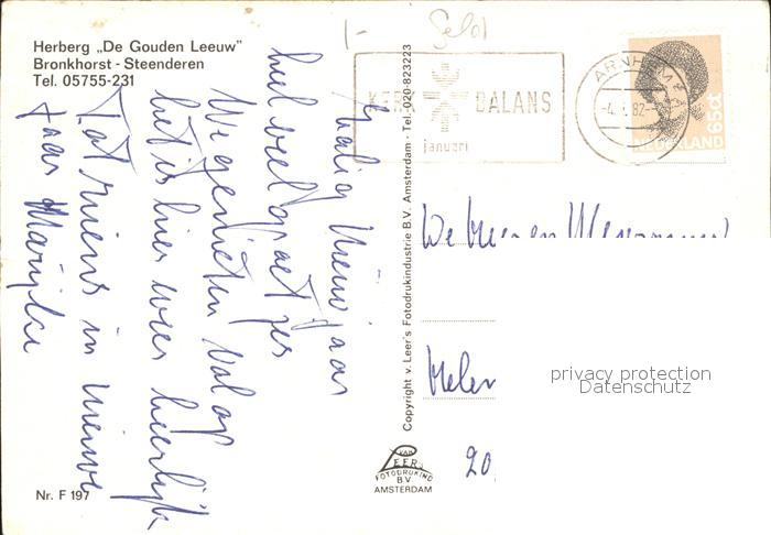 old postcard Bronkhorst Herberg De Gouden Leeuw Restaurant Kirche postalisch gelaufen Erhaltung siehe scans