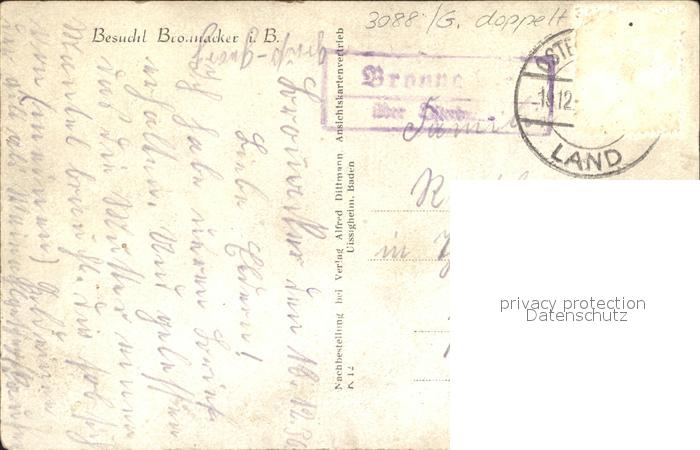 32105897 alte Postkarte Bronnacker Schulhaus Kriegerdenkmal Gasthaus zum Adler postalisch gelaufen Erhaltung siehe scans KatCode: 11110008225082