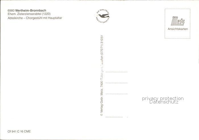 72398745 Bronnbach Abteikirche Chorgestuehl mit Hauptaltar postalisch nicht gelaufen Erhaltung siehe scans KatCode: 11110008128131