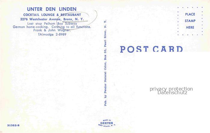 74093035 Bronx New York USA Unter den Linden Cocktail Lounge postalisch nicht gelaufen Erhaltung siehe scans [WerneD78] KatCode: 14140340000000