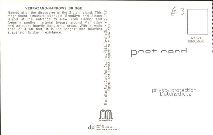 72278248 Brooklyn New York Verrazano Narrows Bridge Staten Island postalisch nicht gelaufen Erhaltung siehe scans KatCode: 14140340000000