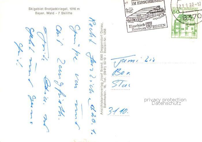 72952757 alte Postkarte Brotjacklriegel Winterpanorama Bayerischer Wald Skigebiet Schlepplift postalisch gelaufen Erhaltung siehe scans [FriedD77] KatCode: 11110009272145