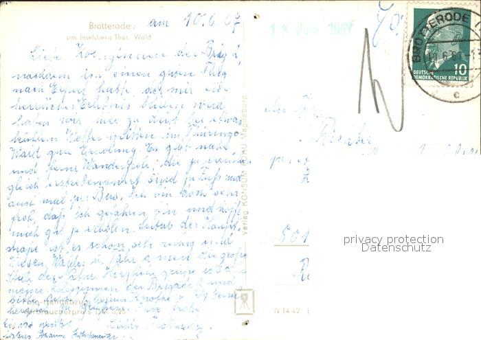 72400822 alte Postkarte Brotterode am Inselberg postalisch gelaufen Erhaltung siehe scans KatCode: 11110016066014