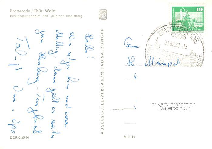 73135099 alte Postkarte Brotterode Betriebsferienheim FER Klein Inselsberg postalisch gelaufen Erhaltung siehe scans [FriedD77] KatCode: 11110016066014