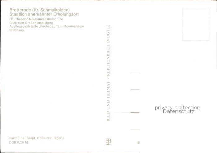 72289550 Brotterode Dr. Theodor-Neubauer Oberschule Grossen Inselsberg Klubhaus postalisch nicht gelaufen Erhaltung siehe scans KatCode: 11110016066014