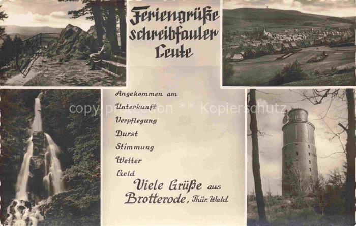 74136026 Brotterode Felsen Panorama Wasserfall Aussichtsturm postalisch nicht gelaufen Erhaltung siehe scans [WerneD78] KatCode: 11110016066014