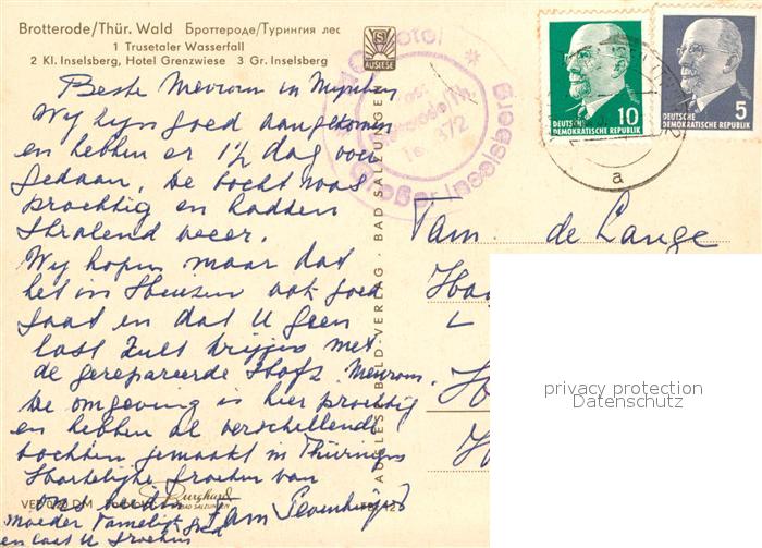 72930878 alte Postkarte Brotterode Fliegeraufnahme Inselsberg Sendeturm Trusetaler-Wasserfall Hotel-Grenzwiese postalisch gelaufen Erhaltung siehe scans [LiesaD40] KatCode: 11110016066014