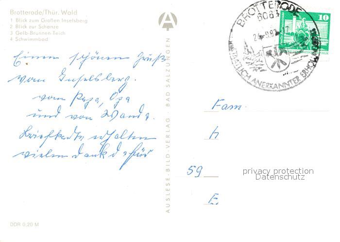 72962632 alte Postkarte Brotterode Gr. Inselsberg Schanze Schwimmbad postalisch gelaufen Erhaltung siehe scans [NatalD47] KatCode: 11110016066014