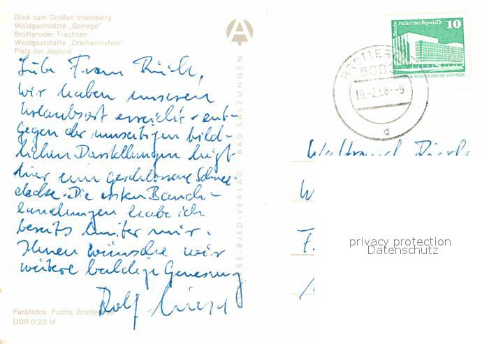 72849695 alte Postkarte Brotterode Grosser Inselsberg Waldgaststaette Gehege Brotteroder Trachten postalisch gelaufen Erhaltung siehe scans [KathaD81] KatCode: 11110016066014