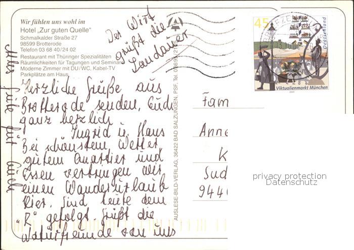 72322385 alte Postkarte Brotterode Hotel zur guten Quelle postalisch gelaufen Erhaltung siehe scans KatCode: 11110016066014