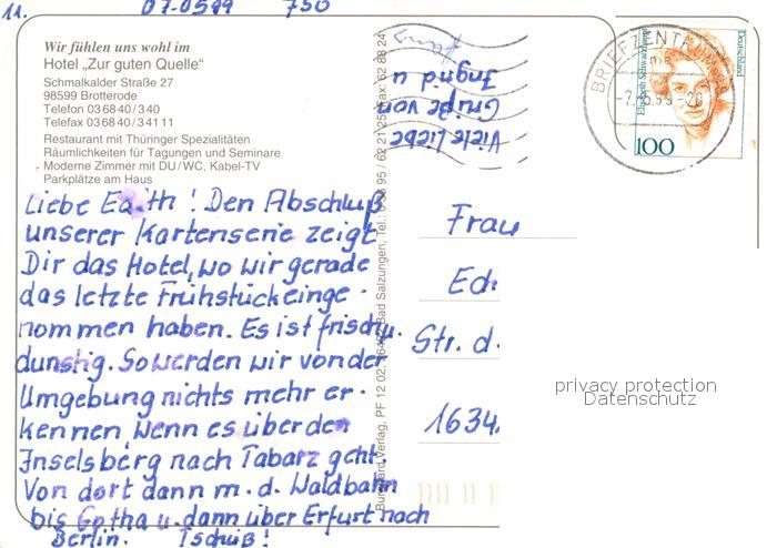 73642066 alte Postkarte Brotterode Hotel Zur guten Quelle Gaststube Zimmer postalisch gelaufen Erhaltung siehe scans [WerneD78] KatCode: 11110016066014