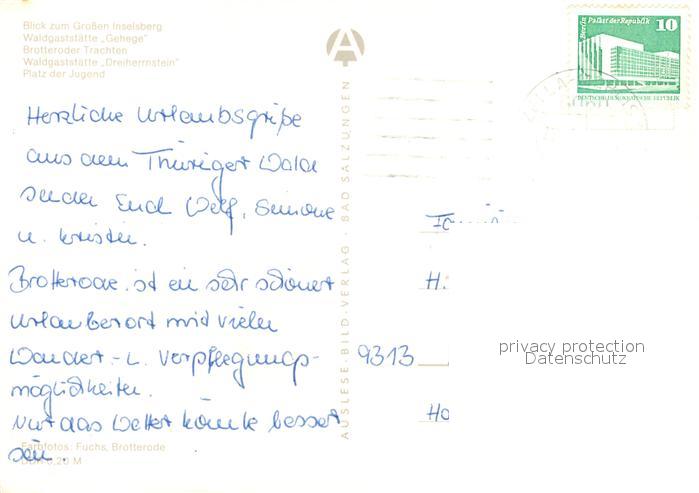 73076084 alte Postkarte Brotterode Inselberg Waldgaststaette Dreiherrnstein postalisch gelaufen Erhaltung siehe scans [KathaD81] KatCode: 11110016066014
