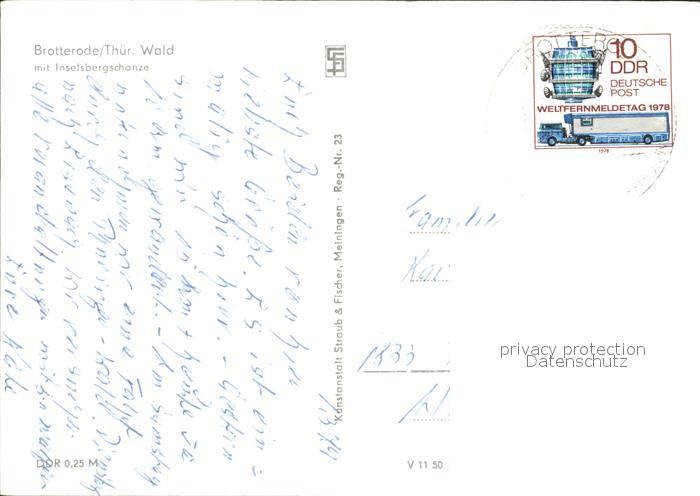72326736 alte Postkarte Brotterode mit Inselsbergschanze postalisch gelaufen Erhaltung siehe scans KatCode: 11110016066014