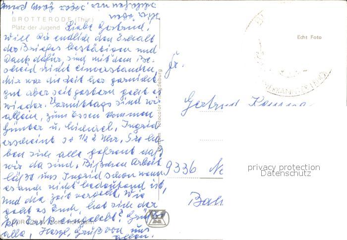 72136524 alte Postkarte Brotterode Platz der Jugend postalisch gelaufen Erhaltung siehe scans KatCode: 11110016066014