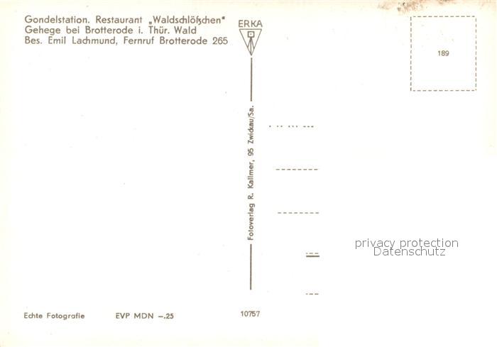 73083411 Brotterode Restaurant Waldschloesschen postalisch nicht gelaufen Erhaltung siehe scans [KathaD81] KatCode: 11110016066014