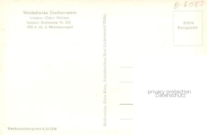 43370483 Brotterode Waldschaenke Dreiherrnstein postalisch nicht gelaufen Erhaltung siehe scans [WerneD78] KatCode: 11110016066014