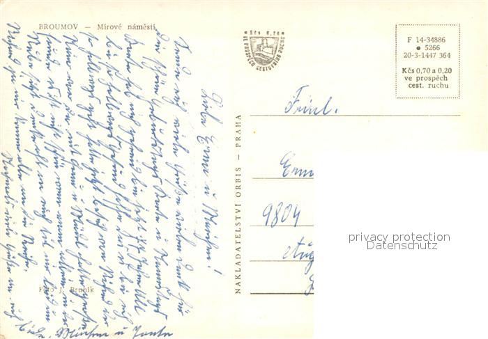 73740628 Broumov Braunau Boehmen CZ Mirove namesti postalisch nicht gelaufen Erhaltung siehe scans [WerneD78] Wern Katcode 11520