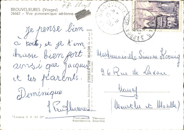 11191726 Brouvelieures Fliegeraufnahme postalisch gelaufen Alte Ansichtskarte Postkarte carte postale Elvi Katcode 11170088388076