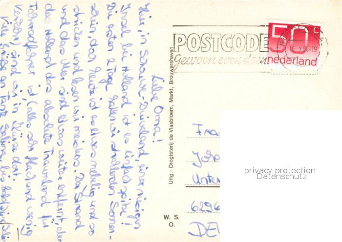 old postcard Brouwershaven Bootshafen Monument Ortsmotive postalisch gelaufen Erhaltung siehe scans [WerneD78]