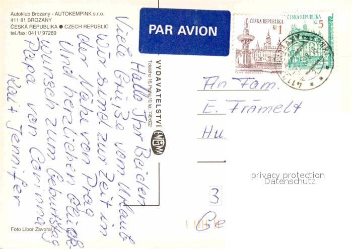 old postcard Brozany Autoklub Brozany Autokempink Camping am See postalisch gelaufen Erhaltung siehe scans [FriedD77]