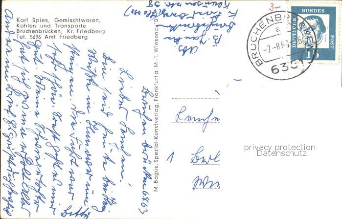 32158782 alte Postkarte Bruchenbruecken Kirche Schule Turnhalle postalisch gelaufen Erhaltung siehe scans KatCode: 11110006440008