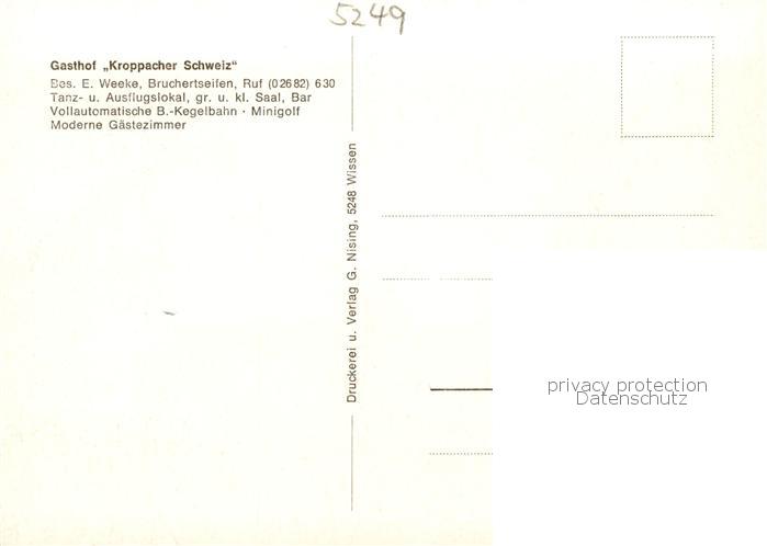 73861392 Bruchertseifen Gasthof Kroppacher Schweiz postalisch nicht gelaufen Erhaltung siehe scans [FriedD77] KatCode: 11110007132014