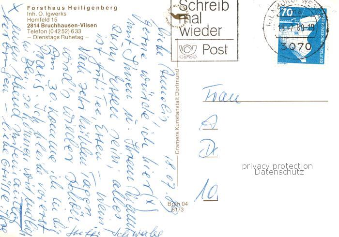 73860313 alte Postkarte Bruchhausen-Vilsen Forsthaus Heiligenberg Kaminzimmer postalisch gelaufen Erhaltung siehe scans [WerneD78] KatCode: 11110003251010