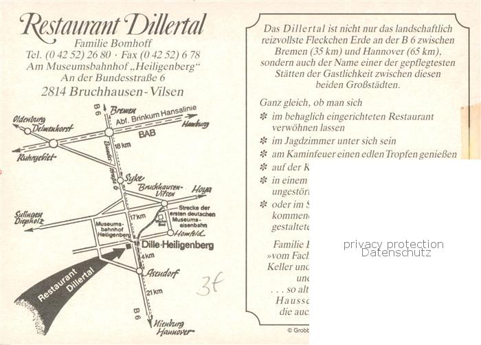 73761973 Bruchhausen-Vilsen Restaurant Dillertal Am Museumsbahnhof Heiligenberg Service am Tisch Kaminzimmer postalisch nicht gelaufen Werbekarte (keine Postkarte) Erhaltung siehe scans [FriedD77] KatCode: 11110003251010