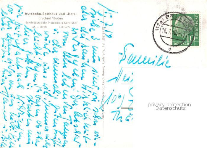 73570037 alte Postkarte Bruchsal Autobahn Rasthaus und Hotel postalisch gelaufen Erhaltung siehe scans [FriedD77] KatCode: 11110008215009