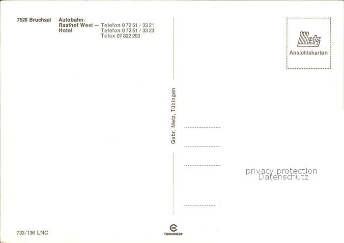 72253871 Bruchsal Autobahn-Rasthof Hotel postalisch nicht gelaufen Erhaltung siehe scans KatCode: 11110008215009