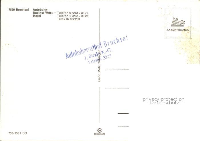 72244008 Bruchsal Autobahn Rasthof West postalisch nicht gelaufen Erhaltung siehe scans KatCode: 11110008215009