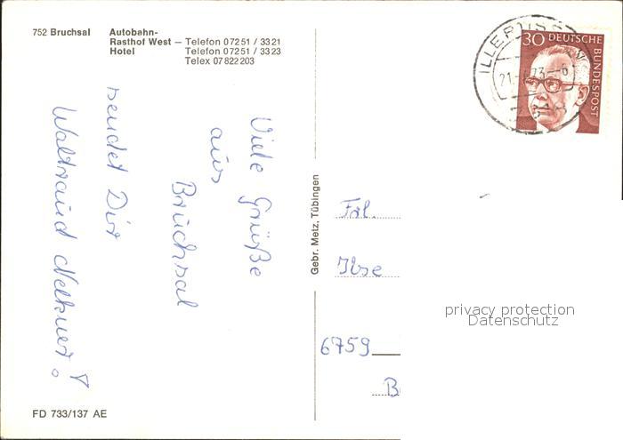 72125075 alte Postkarte Bruchsal Autobahn Rasthof West Hotel postalisch gelaufen Erhaltung siehe scans KatCode: 11110008215009