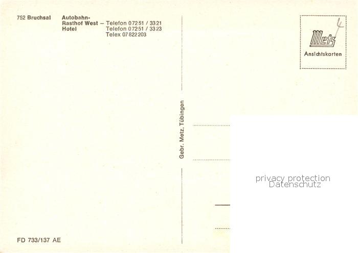 73568865 Bruchsal Autobahn Rasthof West Hotel Restaurant postalisch nicht gelaufen Erhaltung siehe scans [FriedD77] KatCode: 11110008215009