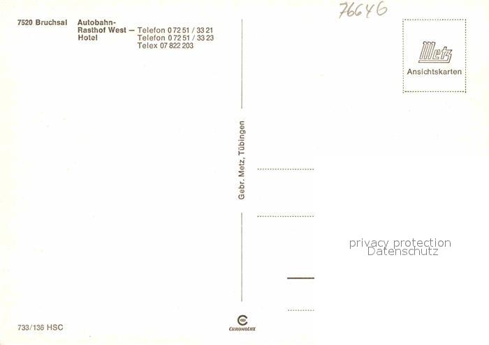 72795588 Bruchsal Autobahn Rasthof West Hotel See postalisch nicht gelaufen Erhaltung siehe scans [FriedD77] KatCode: 11110008215009