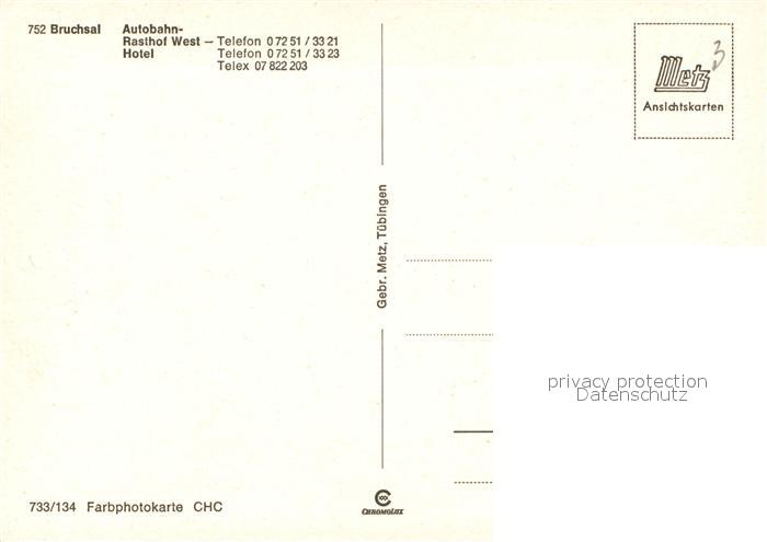 73568863 Bruchsal Autobahn Rasthof West Hotel postalisch nicht gelaufen Erhaltung siehe scans [FriedD77] KatCode: 11110008215009