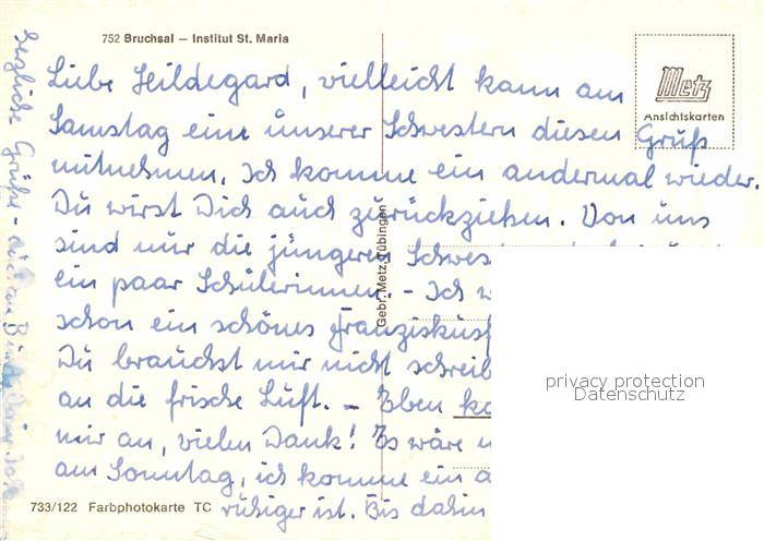 72716818 Bruchsal Institut St Maria postalisch nicht gelaufen Erhaltung siehe scans [FriedD77] KatCode: 11110008215009