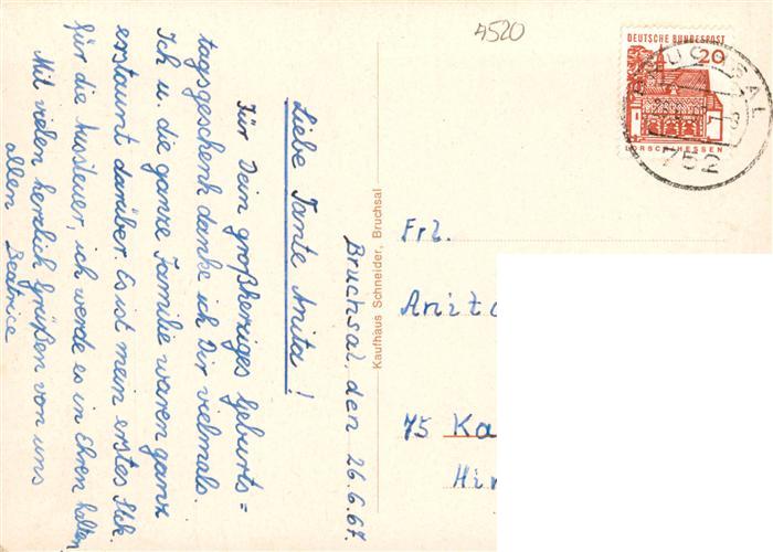 73936284 alte Postkarte Bruchsal Rathaus Stadtkirche Belvedere Damianstor Schoenbernplatz Bahnhof postalisch gelaufen Erhaltung siehe scans [WerneD78] KatCode: 11110008215009