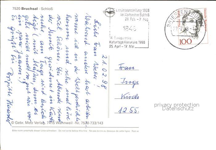 72579245 alte Postkarte Bruchsal Schloss postalisch gelaufen Erhaltung siehe scans [LiesaD40] KatCode: 11110008215009