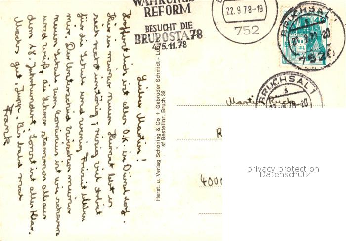 73048440 alte Postkarte Bruchsal Schloss Schlosspark Hauptbahnhof Schoenbornplatz Damianstor postalisch gelaufen Erhaltung siehe scans [KathaD81] KatCode: 11110008215009