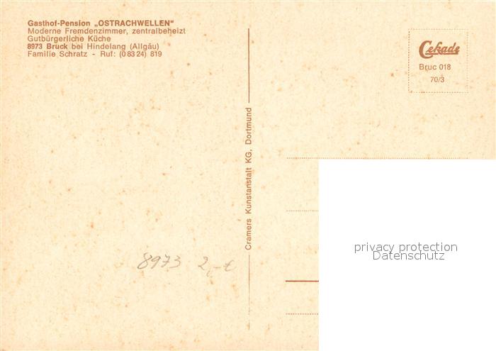73650660 Bruck Bad Hindelang Gasthof Pension Ostrachwellen Panorama Gastraeume postalisch nicht gelaufen Erhaltung siehe scans [WerneD78] KatCode: 11110009780123