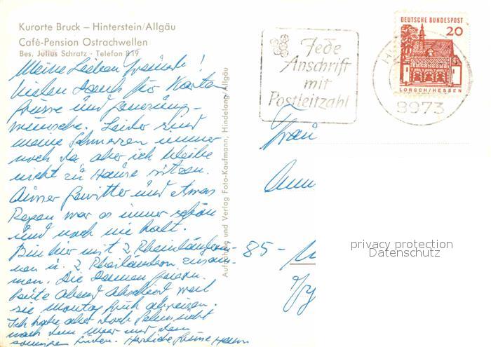 72750567 alte Postkarte Bruck Bad Hindelang Hinterstein Cafe Pension Ostrachwellen postalisch gelaufen Erhaltung siehe scans [LiesaD40] KatCode: 11110009780123