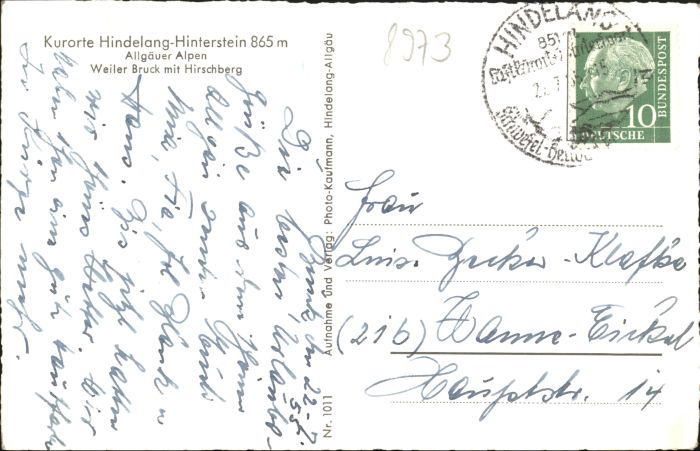 30727716 alte Postkarte Bruck Bad Hindelang Hinterstein postalisch gelaufen KatCode: 11110009780123