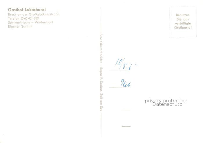 13220408 Bruck Grossglocknerstrasse Gasthaus Lukashansl postalisch nicht gelaufen Erhaltung siehe scans [LiesaD40] KatCode: 11390322050602