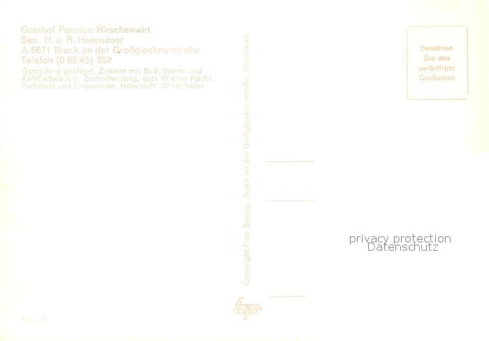 73591767 Bruck Grossglocknerstrasse Gasthof Pension Hirschenwirt postalisch nicht gelaufen Erhaltung siehe scans [FriedD77] KatCode: 11390322050602