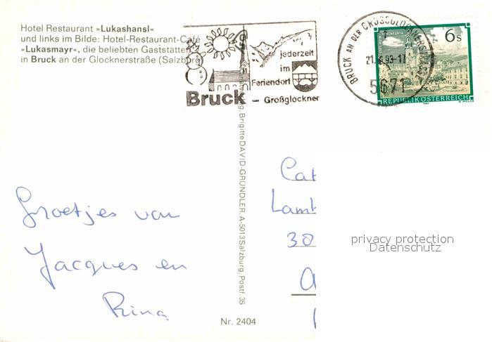 72906871 alte Postkarte Bruck Grossglocknerstrasse Hotel Restaurant Lukashansl postalisch gelaufen Erhaltung siehe scans [LiesaD40] KatCode: 11390322050602